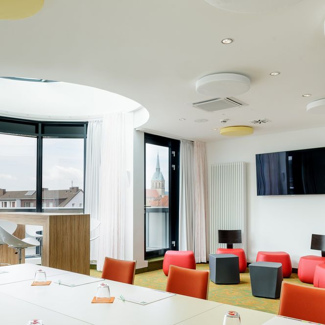 Egal ob geschäftlich oder privat. Tagen Sie über den Dächern Hildesheims mit modernster Technik in toller Atmosphäre. Bei einer Pause können Sie den Blick über Hildesheim auch auf unserer Außenterrasse genießen.