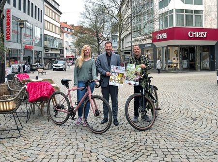 Pressefoto: Von links: Stefanie Hoffmann (Presse- und Öffentlichkeitsarbeit Hildesheim Marketing), Fritz S. Ahrberg (Geschäftsführer Hildesheim Marketing), Thomas Ulrich (Projektleitung Hildesheim Marketing)