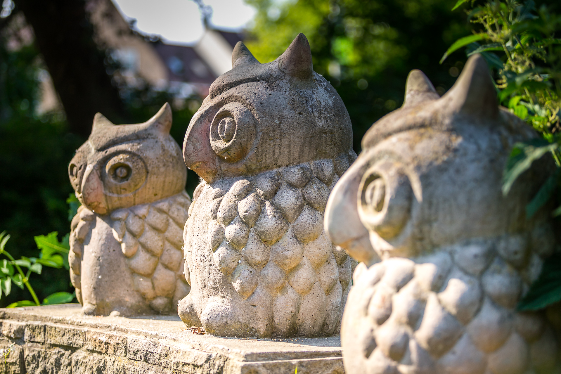 Die Sonne scheint und der Sommer zeigt sich von seiner besten Seite. Mein Weg führt mich nach knapp 10 Minuten in den Liebesgrund, wo ich von drei kleinen Eulen aus Stein begrüßt werde. Hier kann man wirklich Lieblingsgrün erleben. Weg von der lauten Kardinal-Bertram-Straße beginnt ein Tauchgang ins Grüne und nach ein paar Metern übertönt das Rauschen der Bäume schon die Geräusche der Straße. Die Bäume erstrahlen in satten Grün. Hier und da unterhalten sich die Leute oder gönnen sich eine kurze Pause vom Laufen und dem Alltag. Warum der Liebesgrund auch „Hoher Wall“ genannt wird, ist unschwer zu erkennen: links und rechts vom Weg reicht der Wall weit nach oben und ich fühle mich, als würde ich durch ein tiefes Tal laufen. Die großen Bäume schließen sich teilweise über dem Weg wie ein Bogen.