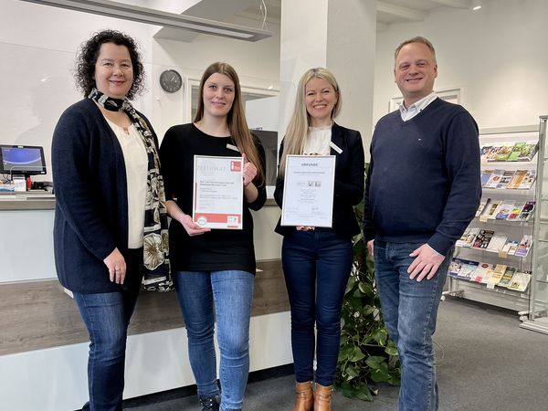 v.l.n.r.: Mirja Engert (Leitung Tourist-Information Bad Nenndorf), die Mitarbeiterinnen Annabell Wögerbauer und Eva Chabinskaja und Benjamin Lotz (Geschäftsführung Kur- und Tourismusgesellschaft Staatsbad Nenndorf mbH)