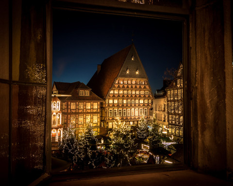 Vor der beeindruckenden Kulisse des Marktplatzes mit dem berühmten Knochenhauer-Amtshaus sorgt wieder ein etwa 10 Meter hoher Weihnachtsbaum für den ganz besonderen festlichen Glanz. Aber auch auf dem Platz An der Lilie laden zahlreiche Buden, umrahmt von hohen Tannen, zum gemütlichen Bummeln und entspannten Genießen ein.