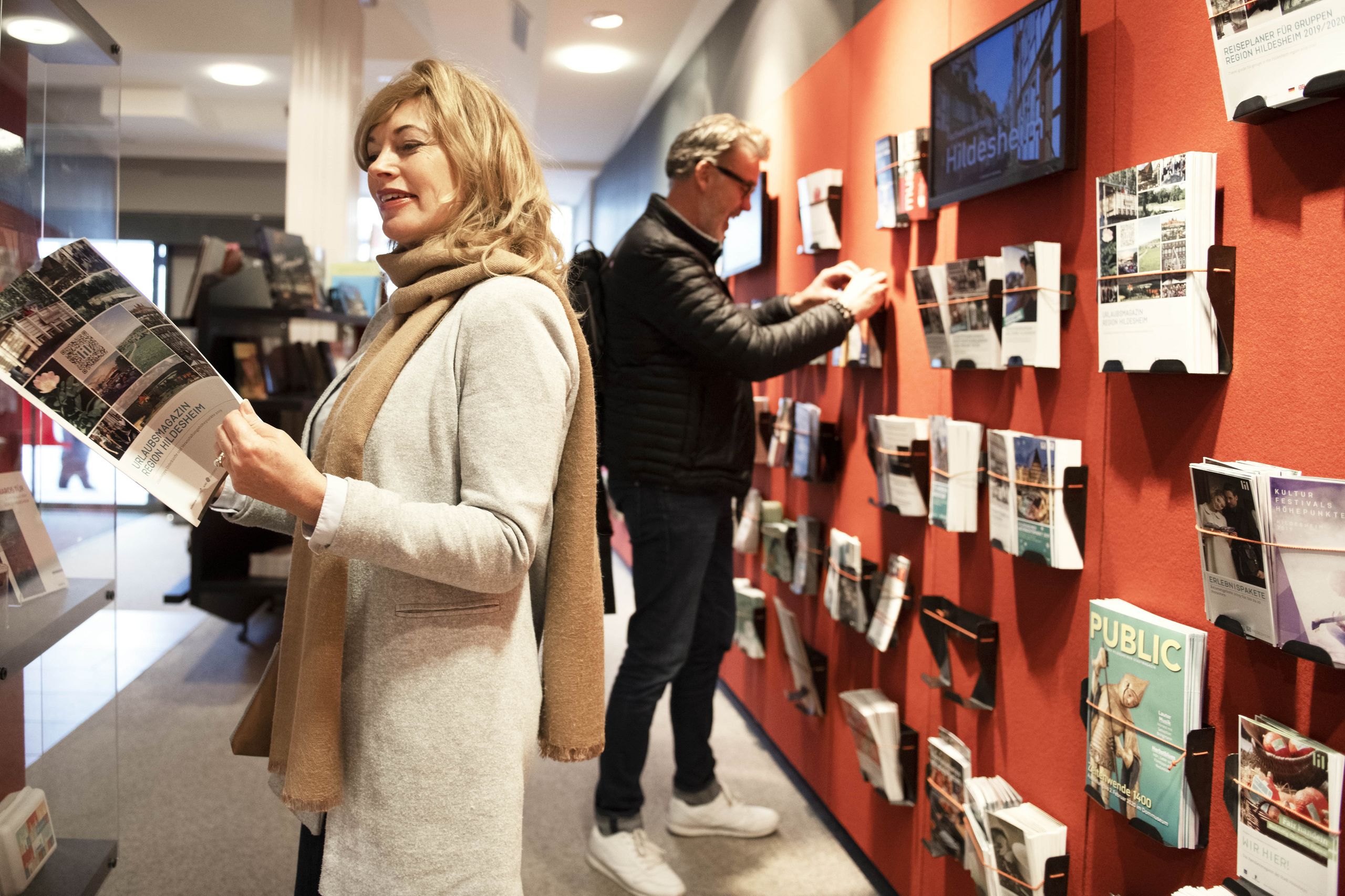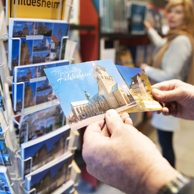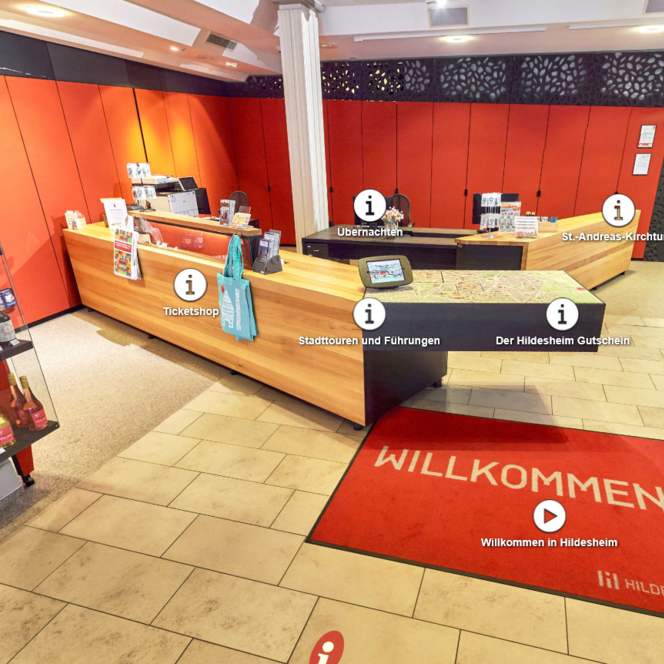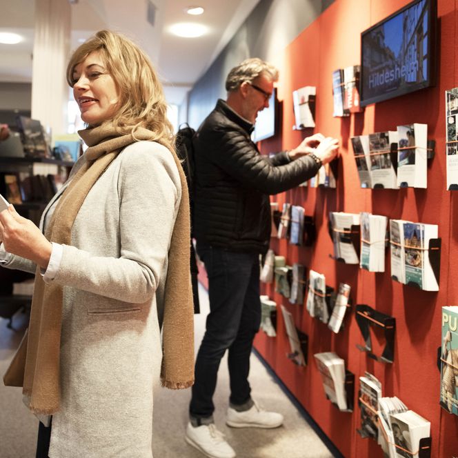 Wenn Sie in Hildesheim angekommen sind, schauen Sie am besten gleich bei uns vorbei! Die Tourist-Information befindet sich zentral am historischen Marktplatz in einem der schönsten Gebäude der Stadt, dem um 1350 erbauten Tempelhaus. Hier heißt Sie unser kompetentes Team willkommen und hilft Ihnen, Ihren Aufenthalt in der Stadt und Region optimal zu gestalten. Sie können Unterkünfte, Stadtführungen oder Regionsfahrten buchen, erhalten wertvolle Auskünfte zu allen Sehenswürdigkeiten, wie den UNESCO-Welterbe-Stätten und dem St-Andreas-Kirchturm mit seinem fantastischen Panoramablick, sowie Infobroschüren, Veranstaltungstipps und vieles mehr. Und wer sich noch tiefgehender über die Stadtgeschichte informieren möchte, kann die Erlebnisausstellung im ersten Obergeschoss besuchen. Bestimmt finden Sie auch noch ein passendes Souvenir aus einer tollen Auswahl regionaler Produkte, Leckereien und Artikeln für echte Hildesheim-Fans. Wir freuen uns auf Ihren Besuch!